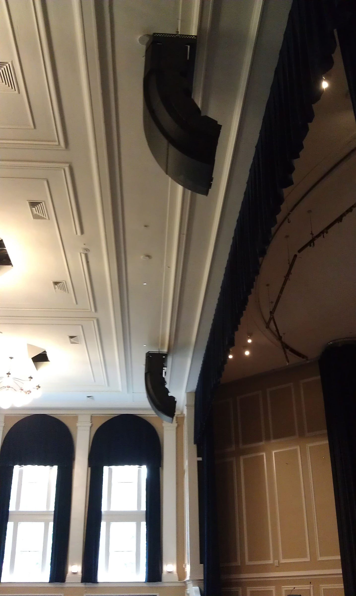 Crane points out the unique challenges of tackling the project in such a space: “The room was originally built as a library and converted into an auditorium much later, so they’ve always struggled with good sound quality in there. The university’s architect was working with administration, and they were primarily concerned with the room’s acoustics. But more accurately, they simply had a problem of coverage – the existing system was not covering every seat. They wanted a new system that would not only cover the room and increase speech intelligibility for lectures, demonstrations and other different things that you would expect in a large auditorium at a college, but they also wanted it to be able to accommodate high-energy music. With these concerns of coverage and versatility of use in mind, it was not hard for us to decide on a Bose RoomMatch system.”