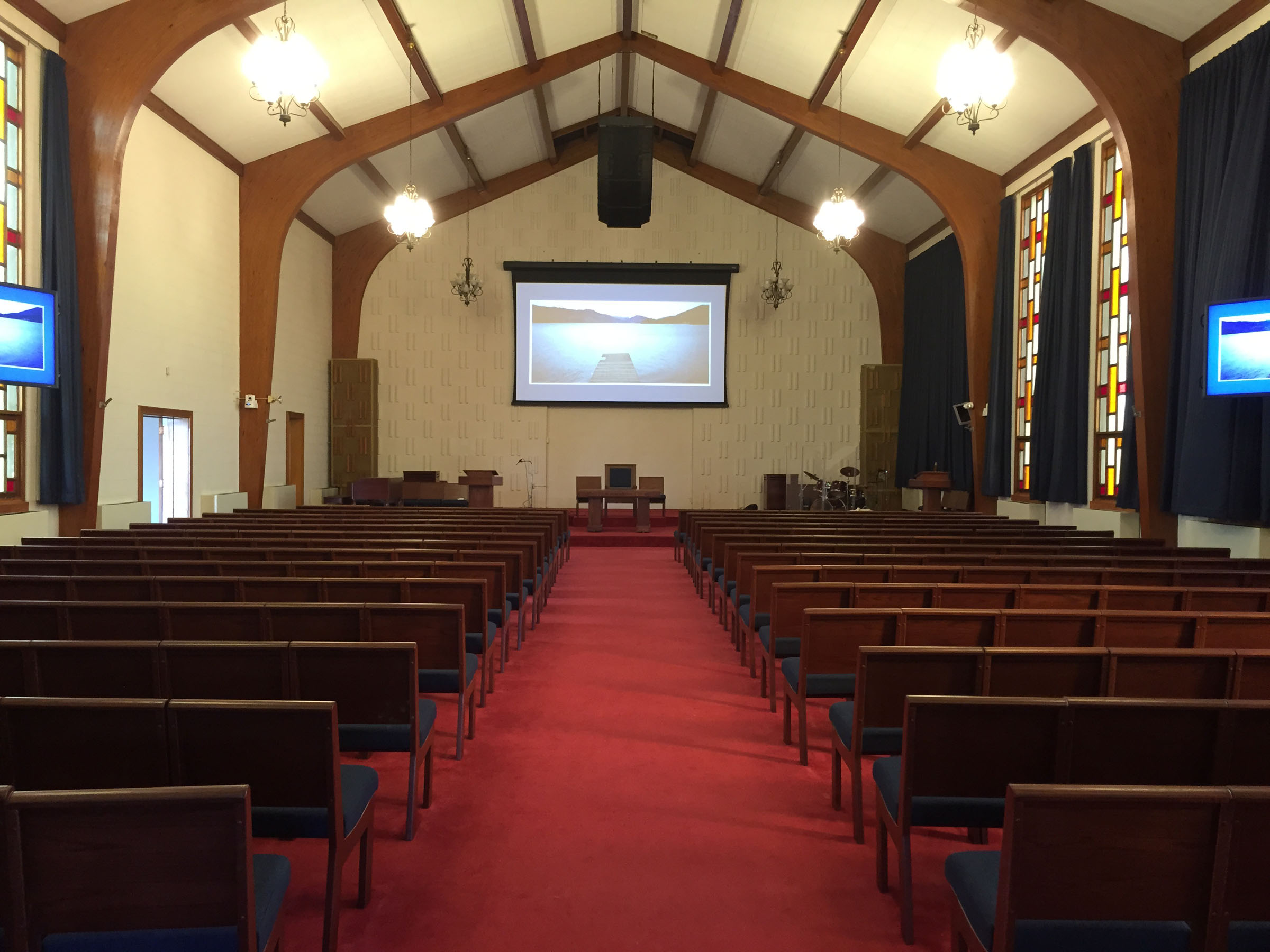 Calvary Chapel received the most comprehensive upgrade, including new video projection and switching systems and a videoconferencing system, underscoring its dual role as a training facility and worship venue. Intelligible sound was critical, and it was achieved using a system consisting of RoomMatch RM5510, RM7010, RM9020 and RM12020 modules, buttressed by four Panaray 310M speakers for fills and powered by two PowerMatch PM8500N networked amplifiers.
