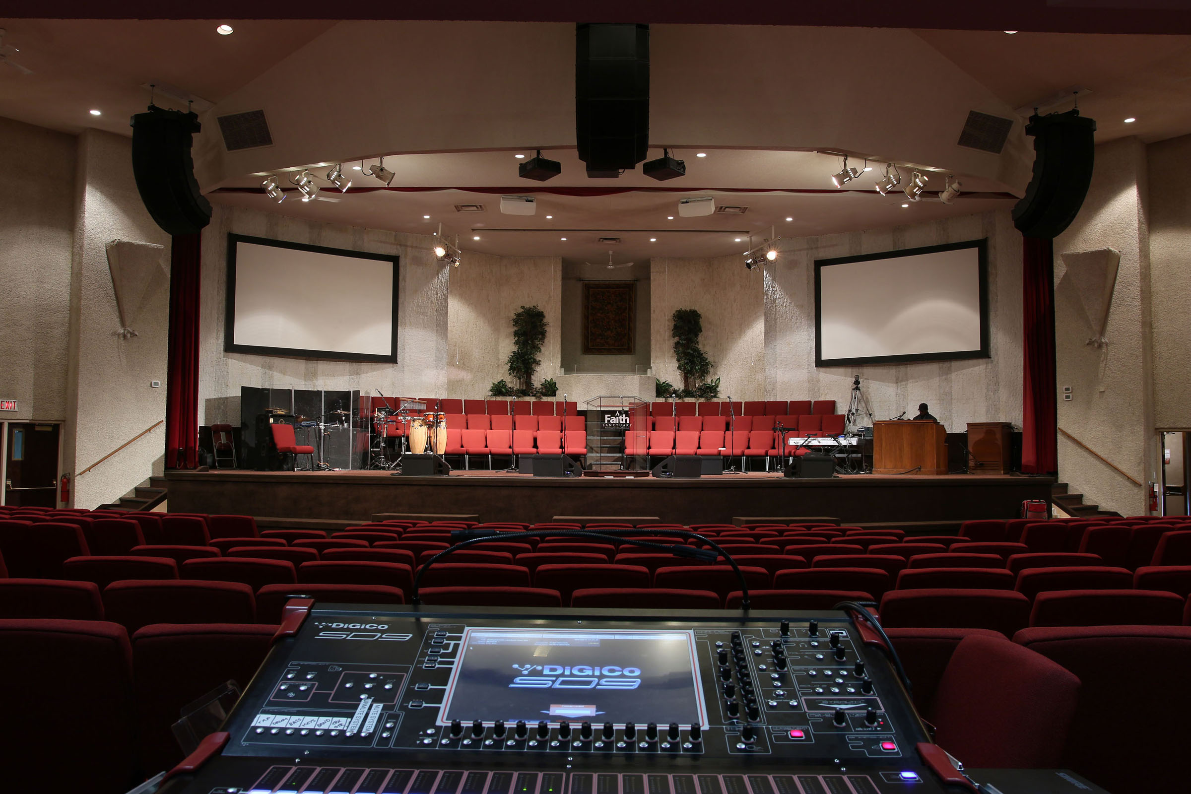 The Bose Professional Territory Manager for Eastern Canada put the church in touch with Toronto-based AV systems integrator Westbury National, which then arranged for Jason Reynolds, owner of Anjel Music Productions and the church’s Technical Director, to experience a RoomMatch installation at a show in Las Vegas. According to Reynolds, hearing the RoomMatch system in action in a space with similar acoustical challenges revealed how the system could help Faith Sanctuary. “I have a lot of experience as a touring front-of-house mixer, and I understand the science behind RoomMatch, which is totally valid, and I wanted to experience it myself,” he explains. “Faith Sanctuary isn’t your typical church — we have a seven-piece band and it can get pretty loud during services. I needed to hear RoomMatch in action, with a live band playing through it, not prerecorded tracks. It was a proof of concept for us, and RoomMatch did exactly what it said it would do: the clarity was there even at high SPL.”