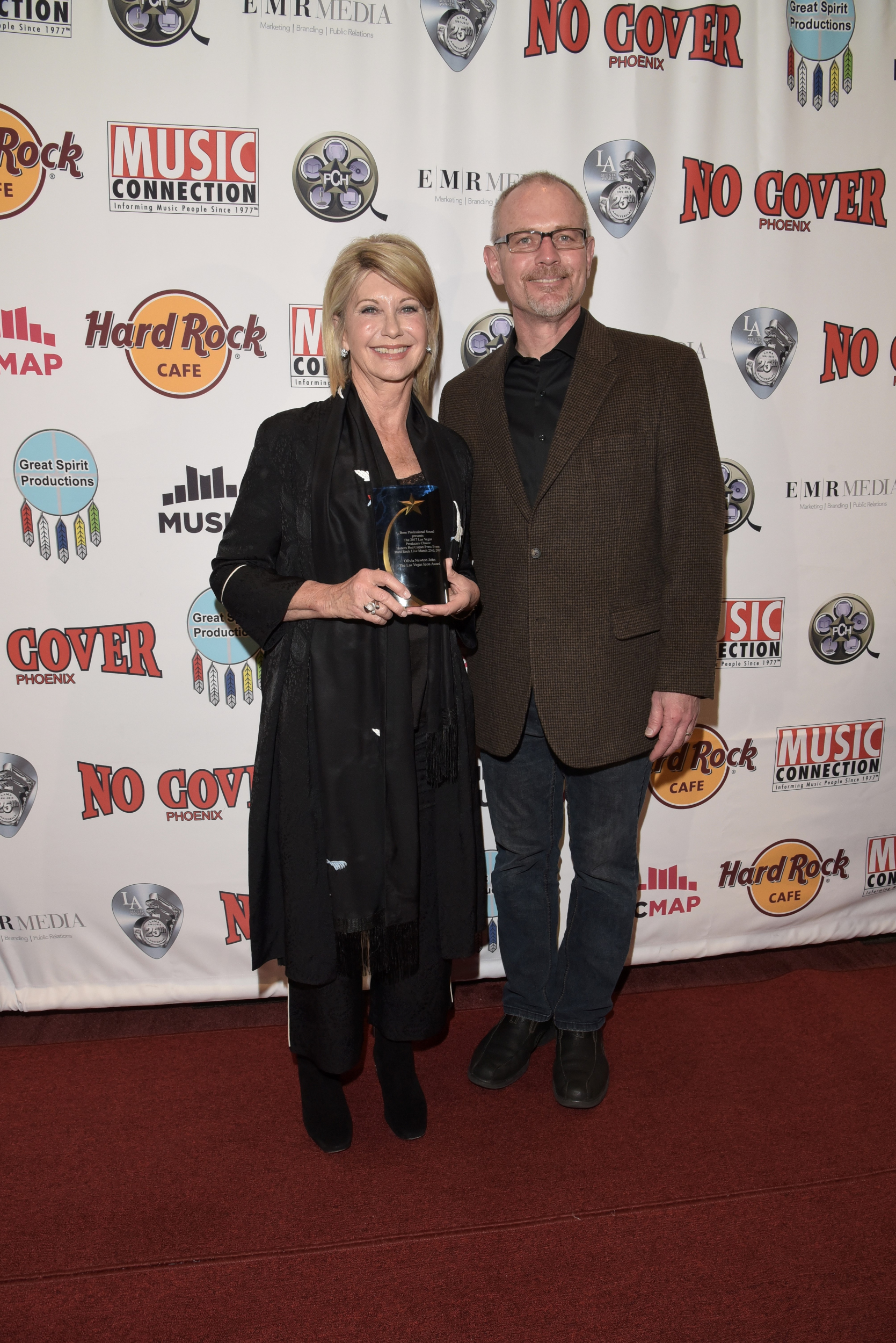 Photo Caption 1: Pictured L-R: Olivia Newton-John and Scott Sanders, Bose Professional, at the inaugural Las Vegas F.A.M.E. Awards on Thursday, March 23rd, 2017. Photo credit: William Kidston.