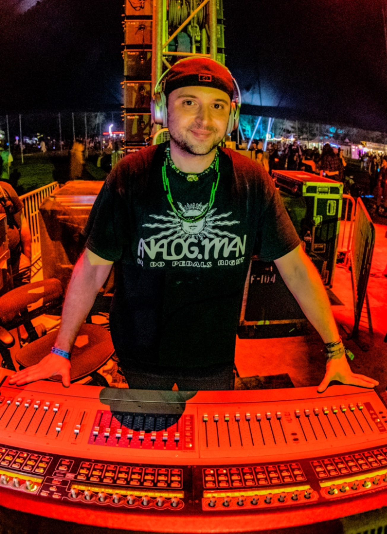 Framingham, MA, August 27, 2019 – Jam bands are known for their integration of a wide range of influences, and Twiddle is no exception. Twiddle incorporates elements of rock, jazz, bluegrass, reggae and funk. That style also extends to their touring personnel, including guitar, bass and keyboard technician Kyle Travis. Kyle’s older brother — the band’s tour manager — convinced him to forgo his career as a high-school history teacher and come and explore his passions as a guitarist and technical aficionado on the road with Twiddle. He hasn’t looked back since making the career change.
