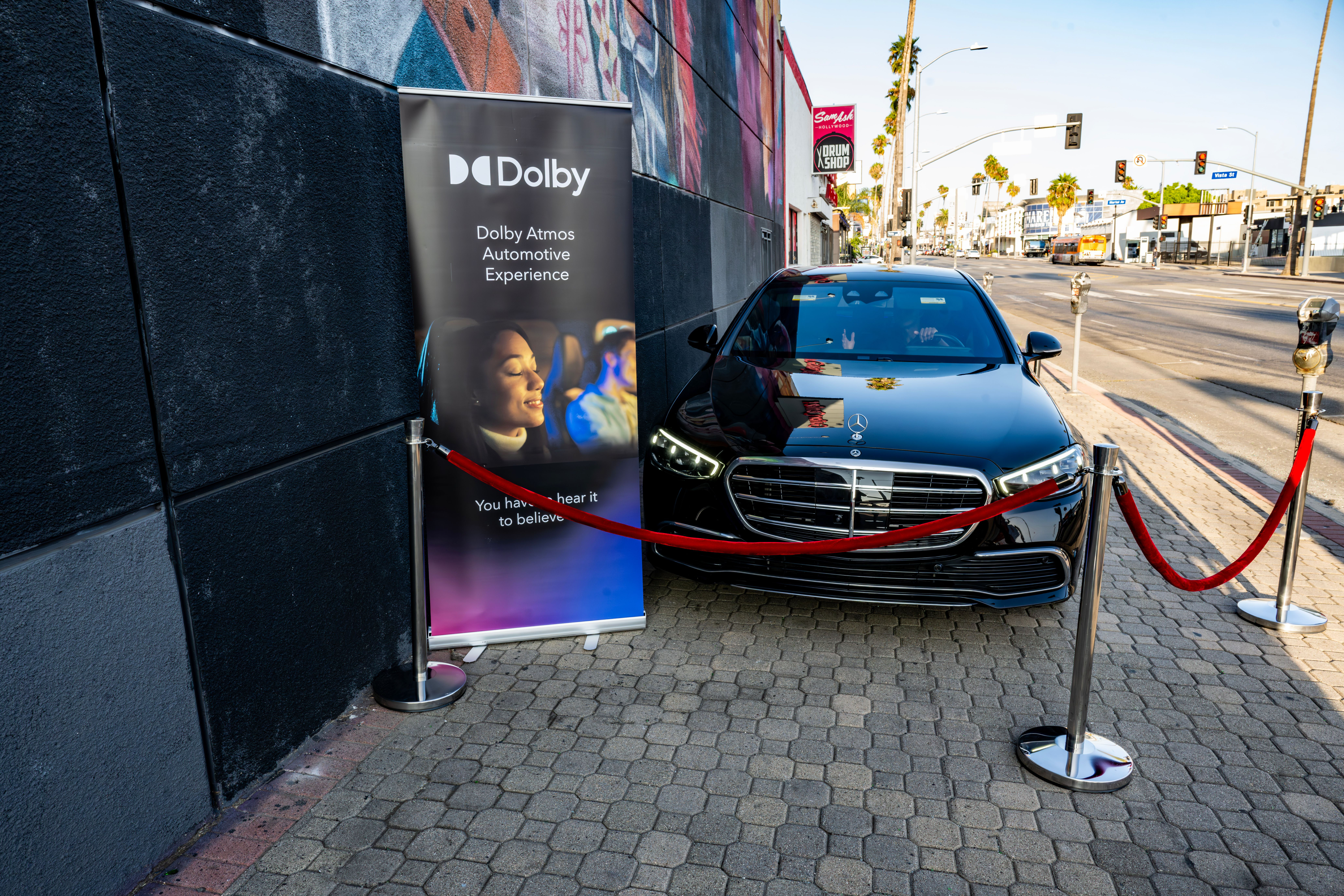 Mercedes-Benz S-580 equipped with a Dolby Atmos audio system, situated outside the new GC Pro Dolby Atmos® Creation Studio at GC’s Hollywood store during an exclusive event on Friday, August 23.