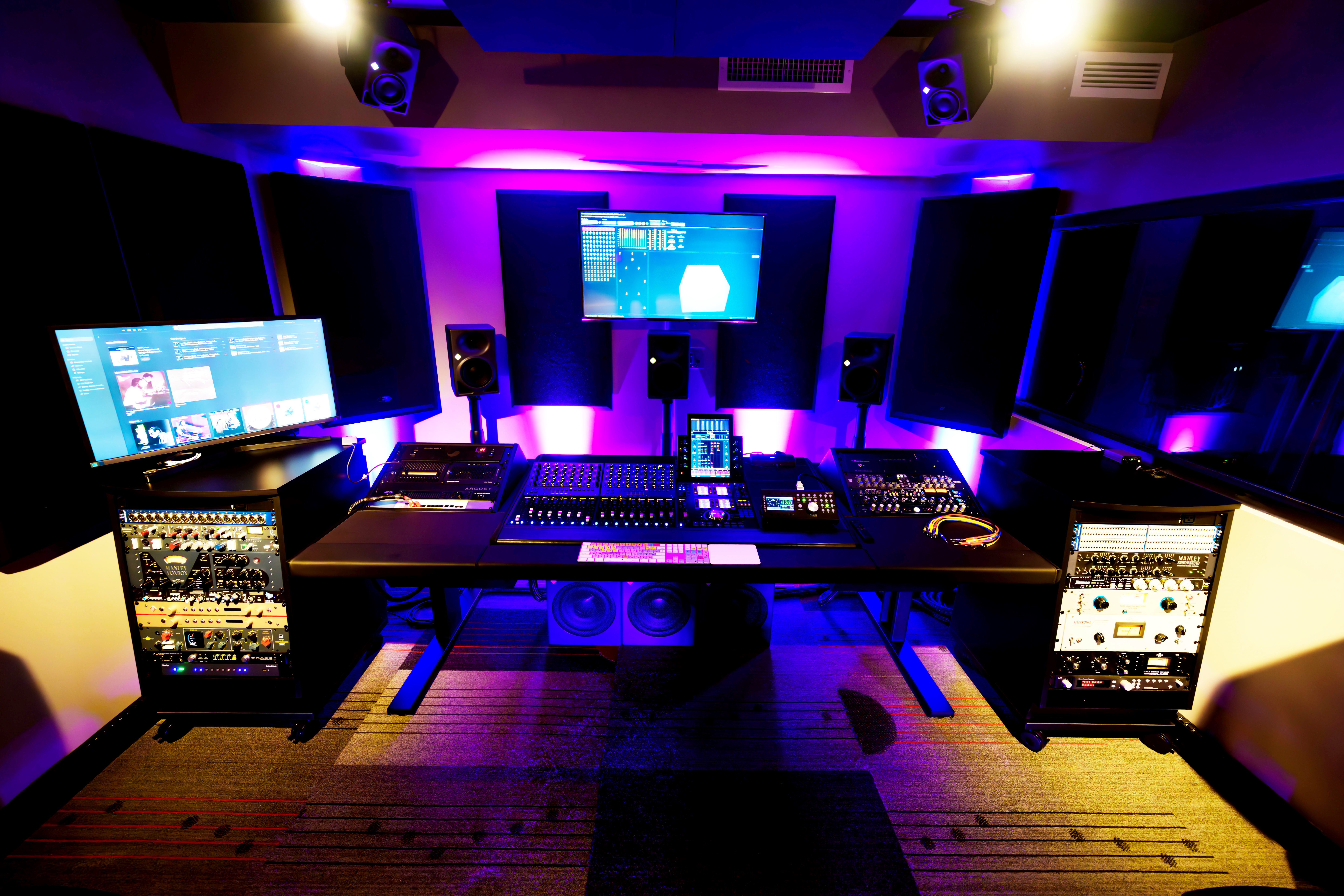 - Acoustic Treatment: Primacoustic treatment throughout the space creates an optimized listening environment for critical listening and Dolby Atmos mixing.