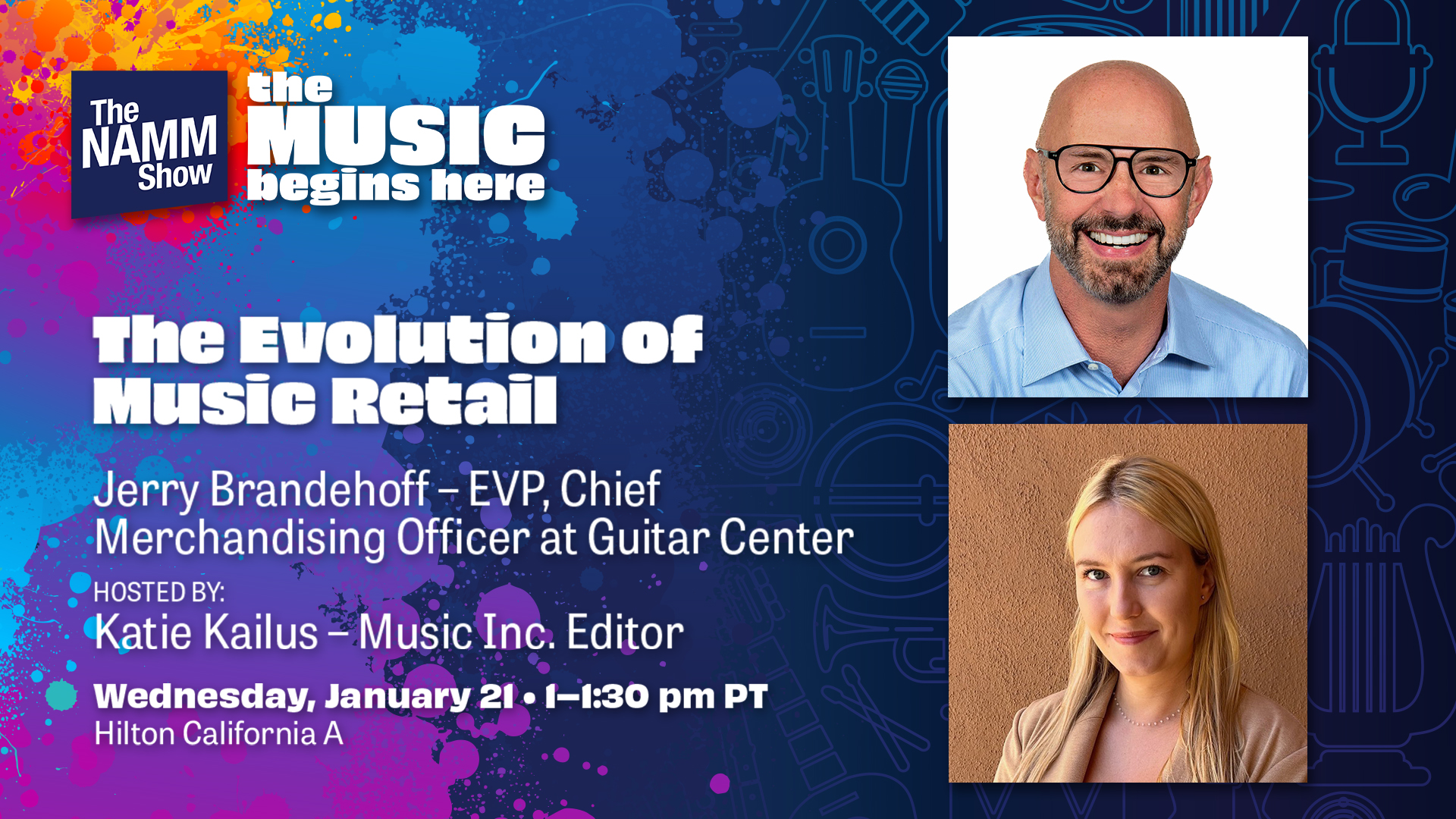 WESTLAKE VILLAGE, CALIF., January 16, 2026 – Guitar Center, the world’s largest musical instrument retailer, will present a featured NAMM session examining the future of music retail with Jerry Brandehoff, EVP and Chief Merchandising Officer, in conversation with Music Inc. editor Katie Kailus. The session will take place Wednesday, January 21, 2026, from 1:00–1:30 PM PST at the Anaheim Hilton Hotel, California Ballroom A.