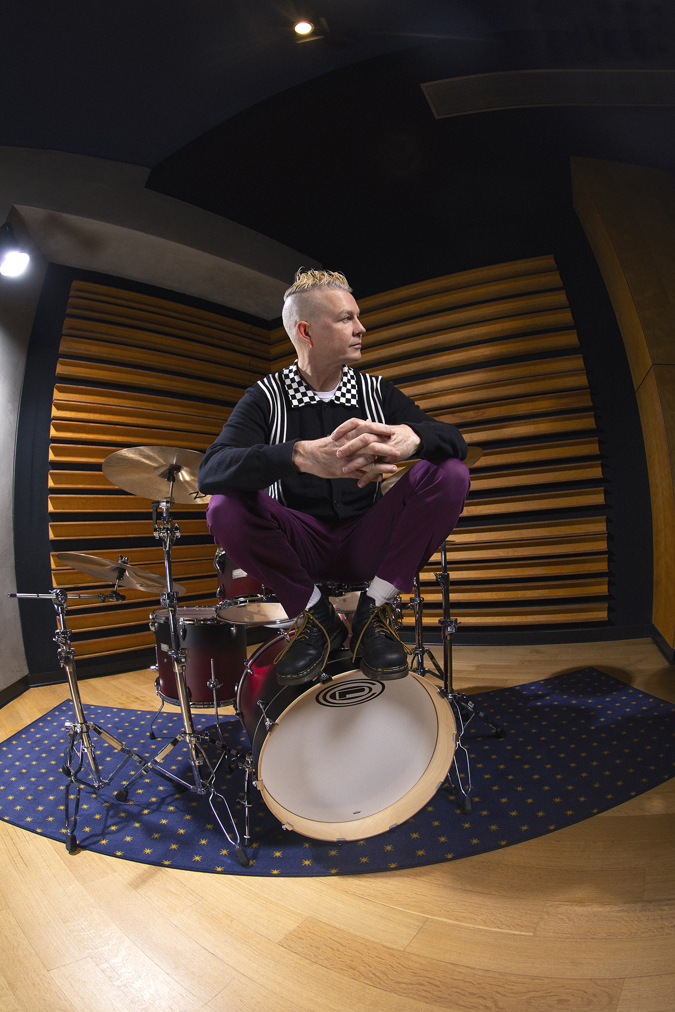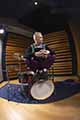 Photo caption 2: Adrian Young (No Doubt) alongside the OCDP 4PC Maple Shell Pack in Sharkbite Fade