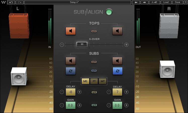 Sub Align puts you in charge of the venue’s PA sound with a simple and original solution: by giving you control over the delaybetween your tops and subs and creating a crossover point between them, it enables you to “move” your subs back or forward in relation to the tops, until you reach the alignment point that sounds best to your ears. No longer do you have to waste precious time fighting unaligned PA systems with EQs and compressors. To achieve extra clarity and punch, Sub Align also gives you control over the subs’ volume and polarity/phase.