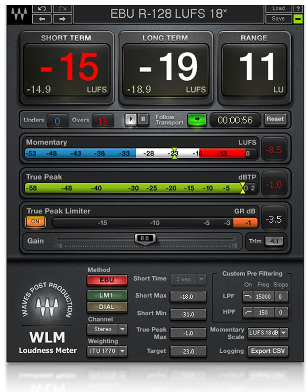 It offers a comprehensive Momentary, Short Term, Long Term and True Peak readouts, as well as a unique warning and logging system that keeps track of users’ levels and alerts you when they have exceeded them or fallen short. WLM Plus now features Gain and Trim controls for correction of loudness levels and a True Peak Limiter, which saves users the need to use additional equipment or software.