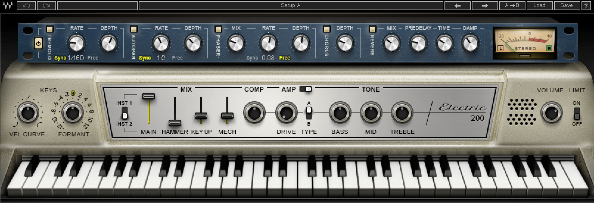 Waves Electric 200 captures the bite, bark and punchy reed tone of the electric piano model used on classic recordings by music giants from Ray Charles, Pink Floyd, Steely Dan and many more. Sampled from two individual instruments, each with its own distinct tone, Electric 200 gives users the flexibility to create classic and adventurous sounds in rock, jazz, R&B and electronic music – “a quantum leap forward in feature, tone, responsiveness, realism and grit from the other sampled Wurlitzer pianos out there,” according to top studio musician Charlie Judge (Carrie Underwood, Blake Shelton, Keith Urban). It is designed to deliver the human touch that is so essential when sampling tonally complex analog instruments. For an authentic feel with true physical presence, users can mix in the sound of the internal piano mechanisms, as if the original instruments were sitting right in front of them.